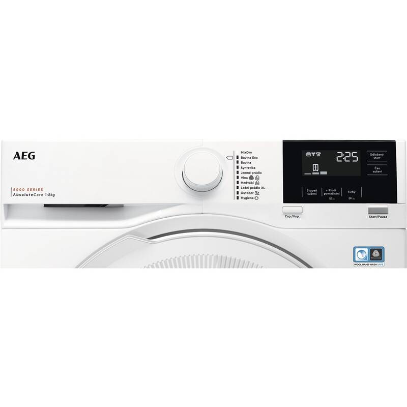 sušička prádla AEG • kapacita 8 kg • energetická třída C • 10 let záruka na invertorový motor • český panel • 10 programů • hlučnost 67 dB • možnost odvodu kondenzátu • možnost změny směru otevírání dvířek • systém AbsoluteCare® – zajistí nejlepší péči pro všechny druhy materiálů • technologie SensiDry® – pro bezpečné sušení při nízkých teplotách • funkce MixDry – rovnoměrné sušení smíšené náplně • LCD displej • V × Š × H: 85 × 59,6 × 63,8 cm (hloubka s přesahem: 66,3 cm)